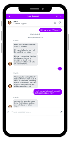 플레이어는 라이브 채팅이나 이메일을 통해 24시간 연중무휴 고객 지원에 문의 할 수 있습니다. 라이브 채팅은 즉시 답변을 제공하지만, 이메일 답변은 보통 몇 시간 정도 소요됩니다. 또한, 사이트에는 자주 묻는 질문에 대한 유용한 답변을 제공하는 간단한 FAQ 섹션이 있습니다.
